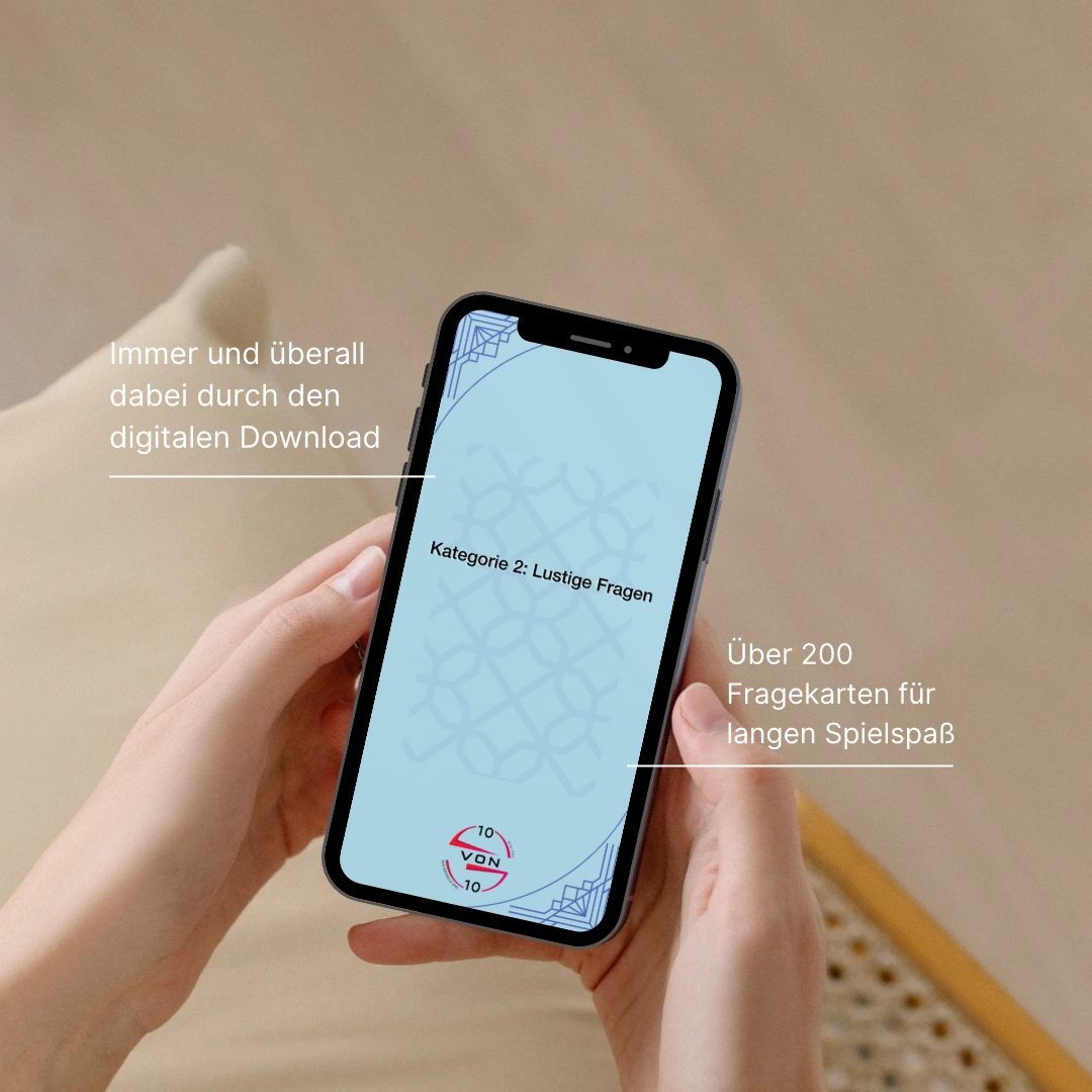 Entdecke 10 von 10, das digitale Kartenspiel mit über 200 Fragekarten für unvergessliche Gespräche. Ideal für Partys, zum lustigen Zeitvertreib, für Interviews, oder als ungezwungener Eisbrecher auf Dates.